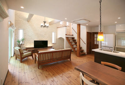 漆喰塗壁や無垢フロアー等、自然素材にこだわりつつ、設備はオール電化を採用し、エコで省エネな住宅にしました。