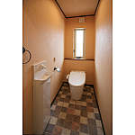 1階のトイレは、漆喰塗りの天井と壁にタイル貼りの床、照明はコーニス照明とこだわった空間に。2階のトイレは、1階とは違った印象のかわいらしい空間に仕上げました。