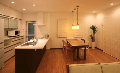 対面キッチンで家族との団欒を楽しみながら家事が出来るダイニング。
