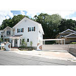 真っ白な塗り壁に映える赤褐色の瓦屋根。アプローチの曲線がフレンチハウスをかわいらしく演出しています。