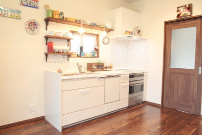 活用されていなかった離れを住居としてリフォームされたN様。離れの水廻りはシンクしかなく、居住性を充分に備えていなかったため、キッチン、シャワールーム、洗面室やトイレを新設し、住まいとしての機能を集約しました。モザイクタイルや落ち着きのあるウォールナット柄のフローリングがレトロシックな雰囲気を与えます。隣接の和室は、DKとのつながりを感じる憩いの空間。既存の造りをほどよく活かした「和リビング」のような趣となりました。