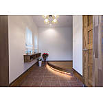 緩やかな弧を描く上がり框と、エントランスからつながるテラコッタタイル。