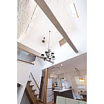 奥様のご実家を譲り受けリフォームを計画されたK様。構造部分までかなり老朽化が進んでいたため、建替えをすることに。新しい住まいのテーマは、奥様ご希望の「フレンチハウス」。リビングには大きな吹き抜けを設け、2本の化粧梁と間接照明でさりげない上質感を演出。壁と天井は素朴な質感で、調湿機能にも優れた漆喰壁とし、吹き抜けの壁は陰影が美しいブリックタイルを採用しています。足元もボルドーパインの無垢フローリングと、自然素材をふんだんに盛り込んだ贅沢な空間に仕上げました。
