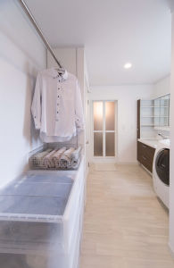 職場に近い、利便性の良い中古住宅を購入したA様。「最小限の間取りで暮らしたい」とのことから、1階は和室を撤去し、寝室となったワンフロアの開放的なLDKに改装しました。水廻りは廊下からLDKへ回遊できる動線を確保。ご夫婦の希望で、洗面室横にはウォークインクローゼットを設置。棚板やポールはDIYによって取り付けた、ご夫妻の合作です。キッチンやクロスのあざやかな色が、空間に個性をプラスしています。