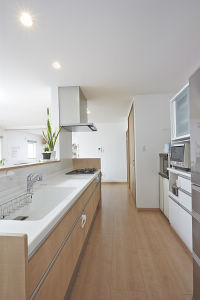 キッチンを中心に回遊できる動線設計で、家事もスムーズ。