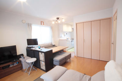 奥様のご実家で2世帯同居されているS様。1階のキッチンや浴室は共有で、2階の寝室をそれぞれの世帯で使用していましたが、生活時間帯やライフスタイルの違いから気を使う場面も多かったそう。そこで、2階部分のうち、主寝室とサニタリースペースをS様世帯の生活の場としてリフォームしました。まず、主寝室だった場所は暮らしの機能が集約されたLDKに変更。リビングは夫婦ふたりでくつろぐにはちょうどいいサイズで、ダイニングはソファタイプのベンチチェアを置き、カフェのような空間を実現。そして納戸だった場所には、フレキシブルな収納を備えたキッチンを新設。「料理の時間もバラバラで別々のメニューになることが多かったので、とても嬉しいです」と、奥様もご満悦です。