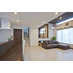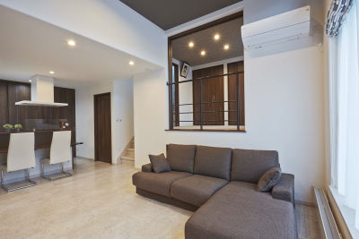 ご家族が増えて玄関やLDKも手狭になり、何かとお困りだったM様。そんなお悩みをすべて解決できるよう、1階は部屋数を変えずに、リビングの天井高を90センチ高くした「プチ吹き抜け」を採用。屋根や壁、基礎を外断熱にすることで小屋裏空間を減らし、その分、縦に広い伸びやかな家族の共用空間が生まれました。