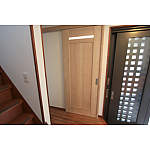 引戸を採用。入りやすくなりました。階段のでっぱりも車いすが通りやすいようカット。