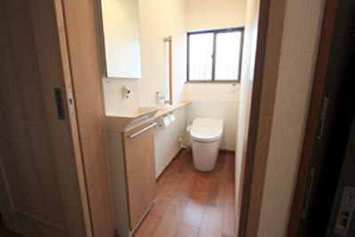 段差をなくし、間口を広げ階段のでっぱりを斜めにカットして通路を広げて介助しやすいよう車いすでも入れるようにしました。また見た目も寒そうなタイルをやめて、断熱材を入れ寒いトイレを解消しました。