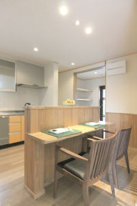 「朝食用に。」と作ったカウンターの食卓スペース。配膳もしやすく、3食の食事をここで取るほど、ご家族内でもご好評。