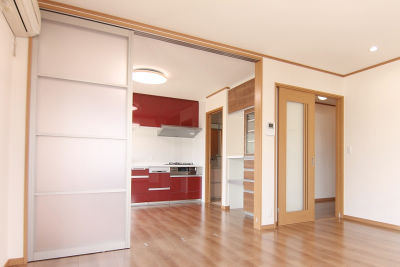 LDKのスクリーンウォールは、部屋を広々と使うこともできますし、区切って冷暖房を効率よく効かせることもできできてとってもエコですね。パネルも半透明で、明るさをさえぎることも無いのでとても気に入っています。