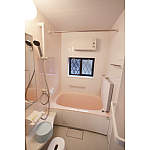 浴室暖房乾燥機は天井懐がいっぱいでしたので壁付に。手摺もついて安心快適な空間に。