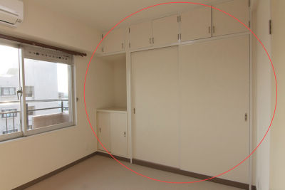 たくさんの洋服が入れられるよう、クローゼットを完備。建具はベッドを近くに置いても開けられる、3枚引戸に。