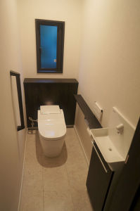 水廻りスペースとしてスッキリ統一された、ホテルの様な空間になりました。
