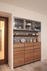 見せる収納も兼ねた壁面収納「キュビオス」。