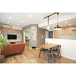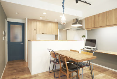 お子様の成長を見据えた間取りをご希望されていたI様。LDKは既存の洋室を取り込み、キッチンの間仕切りを撤去したオープンスタイルに変身。壁のコーナーを斜めにデザインしたことで、キッチンにいてもリビングのすみずみまで目が届きます。リビング横の和室は拡張して2つのクローゼットを設けた子供部屋に。将来的にはお部屋を仕切って個室空間になるなど、お子様の成長とともに使い方が変えられる設計です。
