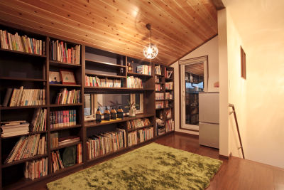 2階部分には壁一面を本棚にした読書スペースを設けました。