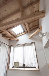 採光性を高めるほか、室内に広がりを与えてくれる天窓。