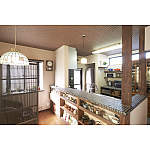 新築当時の流行だったカントリー調の空間に大好きな和の古家具を置くことに違和感をお持ちだったF様。閉塞感のあった独立型のキッチンは、垂れ壁と吊り戸棚を撤去してオープンに。あえて黒のタイル貼りとすることで、レトロな味わいが感じられます。そこからキッチンを中心に、土間を意識したフロア材やウォールナット色の塗装、天井の網代風クロスなど、和のヴィンテージテイストがふんだんに盛り込まれています。