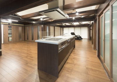 実家のご両親が安心して暮らせるようにとリフォームされたM様。襖によって細かく区切られていた和室部分を一体化し、開放的なLDKへと造り変えました。天井には吹き抜けを設けることで、対面キッチンによって生まれた空間の広がりをより感じられる造りに。断熱改修で冬でもあたたかく、フラットな廊下や段差部分のスロープなど、ご両親にとって暮らしやすい安心の住まいとなりました。