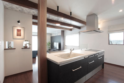 長い廊下でキッチン、和室、広縁がつながるS様邸。特に居間とも離れていたキッチンは不便で使い勝手が悪いとお困りでした。そこで、奥様が多くの時間を過ごすキッチンをアイランド型へリフォーム。和室や広縁だった空間をリビングダイニングとし、広々とした一体空間へと生まれ変わらせました。キッチン裏には収納力抜群のパントリーも備え、奥様も大満足の様子です。