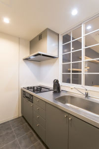 キッチンや浴室はあまり使われないというA様のご意向から、設備はほぼそのままに、キッチンの吊戸棚を撤去しリビング空間とキッチンの間に室内窓を設けました。調理時のにおいなどを遮断してくれる一方で、腰壁上から大きく開いた開口部は開放的で、窓から視界が抜けるため空間に広がりを感じるセミクローズな空間に仕上がっています。内装では、天井のコルク仕上げや書斎スペースのクロス、TV背面の塗り壁など、お部屋に豊かな表情を生んでいます。照明はあたたかみのある電球色を基調としながら、調光によってさまざまなシーンを演出。「寝室から音楽を聴きながらリビング・書斎を眺めるのがお気に入りの時間です」と、A様もご満悦。ひとつひとつのこだわりがお部屋に豊かな表情を与え、大人の時間を楽しむ上質なリラックス空間となりました。