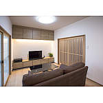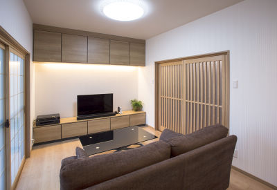 奥様の定年退職をきっかけに、「これからの時間を二人でゆっくり過ごせる空間をプレゼントしたい」との想いでリフォームを決めたK様。暮らしやすさを考えて、これまでは2階にあった寝室を1階に移動し、1階で生活のすべてが完結する間取りに変更なさいました。物置として使われている和室は間仕切りを撤去し、フローリング貼りの寝室に。壁面収納を兼ねたTVボードは、間接照明によるやわらかなあかりが落ち着きある空間を演出してくれます。セカンドリビングのような居心地と、ご夫婦がゆったりお休みになれる寝室スペースが一体となった、くつろぎの居場所が生まれました。