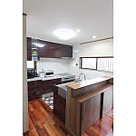 キッチンの空間を最大限生かすため、Ⅱ型キッチンを新設。冷蔵庫の位置や配膳の動線を意識し、お客様と打合せを重ねました。