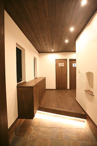 ニッチとアール壁がアクセントになっている玄関ホール。