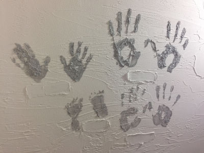 玄関の扉を開くと、家族全員の手形・足形がお出迎え。