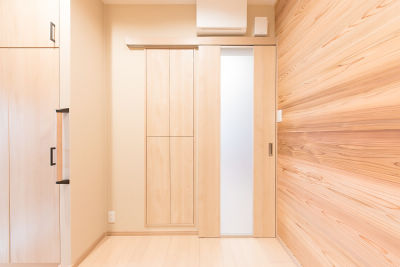 キッチン内にあった勝手口を移動させ、玄関収納コンポリアを設置することで大容量の収納スペースを確保。