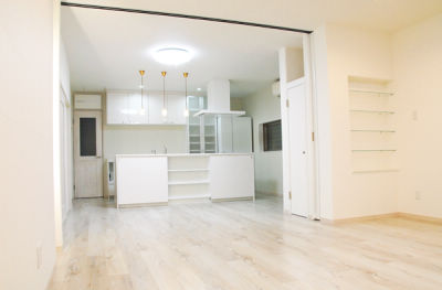 2部屋を分断していた部屋を1部屋にすることにより解放的で広い空間をご提供することができました。