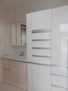 統一感もでて、暗くなりがちの洗面所も明るく。