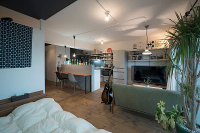 3室をワンルームにして広々としたLDKに。こだわりはBARのようなカウンターキッチン。