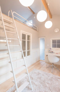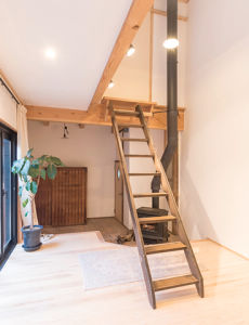 使い込まれた味わい深い階段は、背板を外して2階和室に昇る梯子に再利用。