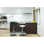 息子さんからプレゼントされたカウンター式収納は、バツグンの収納力。「キッチンまわりがスッキリしました」と奥様。普段は夫婦の食卓として利用しています。