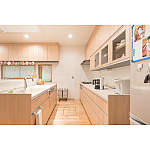 お嫁さんと並んで作業できるように、将来的にはお孫さんもお手伝いできるようにと、キッチンの動線巾は広めに確保。床暖房を設置し、調理中の足元もポカポカです。