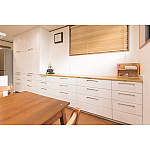 大容量のカップボードは色々な物がたくさん入るので、家の中がすっきり。インテリアのアクセントにもなっていて、見た目の迫力や豪華さが来客にも好評です。