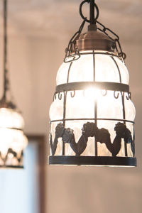 庭の手入れやハンドメイド、絵は個展を開くほど、という多趣味な奥様は1日のほとんどをこの場所で過ごしています。そんな居心地のよさは、既存をいかしたリフォームならではのあたたかさにあります。吊り元を変えて内開きから外開きにしたドア、「いじらなくて本当に正解だった」というクラシカルな天井などお気に入りの内装は残し、ウッドブラインドなどの新設部分に落ち着いた色を選んで融合。「木に合うようなライトがいいな」と2人で選ばれたアンティーク照明のアクセントが、A様お好みのレトロなカフェ風を演出しています。