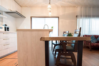 一番のこだわりであるカウンターの一枚板を見つけたときは、A様と一緒に「これしかない」と思いました。最初の打ち合わせ時から、話を聞いただけでイメージが膨らんでいたので、とても提案しやすかったです。だからこそやりすぎないというか、お客様の要望に合わせた暮らしの提案をすることを心がけています。