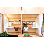 2階は減築し、その分、大小5つのテラスが生まれました。それぞれのテラスに植栽が置かれ、「家の中のどこにいても緑を感じられるのが嬉しい」とご夫婦ともに大満足。「リビングにつながるテラスから眺める山々の稜線と、そこに沈む夕日を見ていると、心が豊かになります」と、借景をいかした間取りが暮らしにゆとりを生み出しているといいます。屋根を架け替えたことでキッチンとリビングを勾配天井にし、開放的で気持ちのよい空間に。天窓から明るい日差しが降り注ぎ、ブックカフェのようなコーナーが設けられ、夫婦のくつろぎタイムを贅沢に演出しています。
