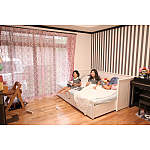 ポイント②既存のリビングには収納がなく、暗い雰囲気だったので、女の子のお部屋になるようにホワイトを基調とした壁紙へ、クローゼットもホワイトで統一。アクセントクロスやカーテンはお孫さんに選んでいただき、お部屋づくりに参加していただきました。