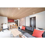 ウォールナットのアクセント壁で、あたたかい雰囲気に。