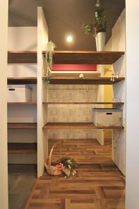 棚収納を飾り棚で演出 インテリアを楽しめる遊び心あふれる空間になっています。