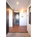 素材の表情が楽しめる玄関 存在感のあるレンガと建具の色合いが印象的