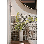 今回特にこだわったのは、深い味わいを感じられる自分好みの空間にすること。間取りとしては、家事動線を意識し、キッチン→洗面室→玄関へ行ける回遊式の間取り。また、一番こだわったのはリビングの広さ。過ごす時間が一番長い場所を広々と設計したことで、日常の暮らしも、友人を招いた際にも、窮屈なく快適に過ごしやすくなった。パーテーションで仕切られた空間は、趣味スペースや室内干しスペースとして活躍。キッチン裏側の壁には無垢カウンターと六角タイルを施工。味のある建具は、ヴィンテージテイストに塗装。シューズクロークと玄関に設置した照明器具は空間のアクセサリーに。夜になるとより一層あたたかくまわりを照らす。洗面化粧台など水が飛びはねやすい壁にはタイルを施工。ウォークインクローゼットの内装仕上げは、13種類もの壁紙を採用。冬の寒さ、結露対策として、インナーサッシを採用。広い空間でも寒さを感じないようになった。