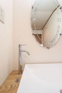 今まで使っていたオーバルの可愛いミラーはそのまま洗面で使用