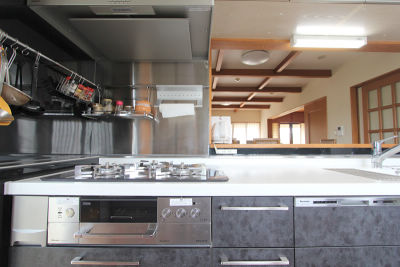 我が家から子供達が巣立ち、夫婦2人での暮らしになり数年。近くに住むたくさんのお孫さんたちが頻繁に遊びにくる、にぎやかな家となりました。毎週来るお孫さんたちが一番使うのは、やはり水廻りです。誰もが使うトイレ、洗面をはじめとし、孫達と一緒に入るお風呂や、みんなで食事するためのたくさんの料理を作るキッチンも、だんだんと古くなり、部分的に壊れてしまっていたり、汚れが掃除してもなかなか取れなかったり、不便な水廻りでした。家はもちろん、建築当時にこだわりを持って建てた愛着のある住まい。無垢の木を床や壁に使用したり、アンティークの照明やデザインガラスが使用されていたりと、時が経つごとに味わい深くなる住まいです。そんな住まいのリフォームは、味わい深い住まいの部分を大切に残しつつ、新しいものを取り入れて、双方がうまく調和しあうようにしたい、という希望がありました。