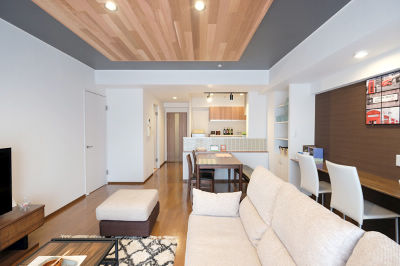 天井に無垢材を使用することで空間に落ち着きと温もりをプラスしました。