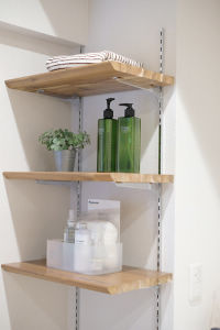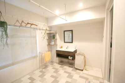 部屋干しが出来るよう、北側の洋室を思い切って洗面脱衣室にし、洗面・洗濯・部屋干しまでできるようにしました。また、隣にウォークインクローゼットを設けることで、洗濯物の収納も楽にできるようにしました。